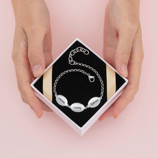 Personalized Mother Bracelet Engraved 3 Names Custom with 3 Oval Pendant